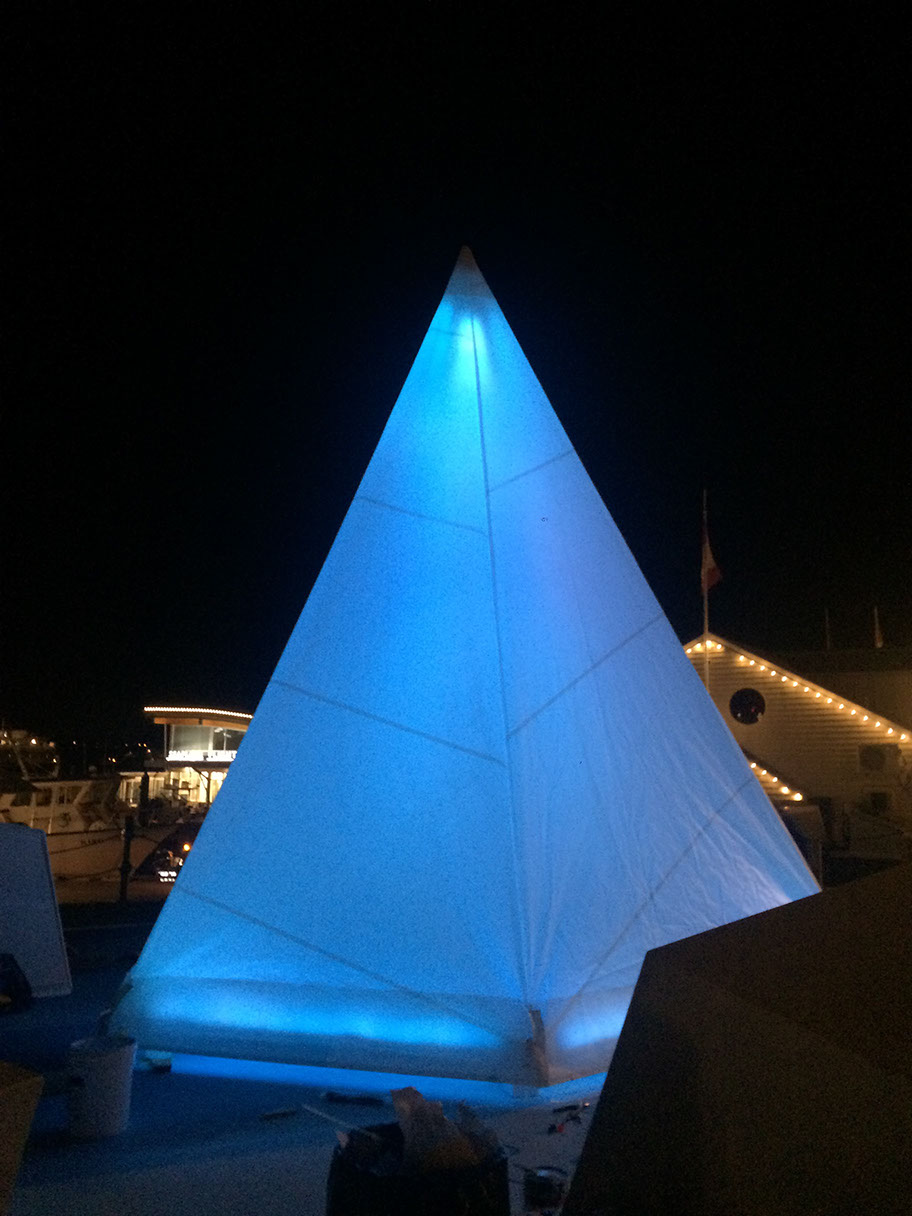 Designed as benches for lounging, the small boats create personal vessels for sailing away a few minutes or an afternoon in the sun atop the brilliant blue surface. The materiality, size and lighting of the larger beacon invites exploration and play as well as framing views of the Inner Harbour.