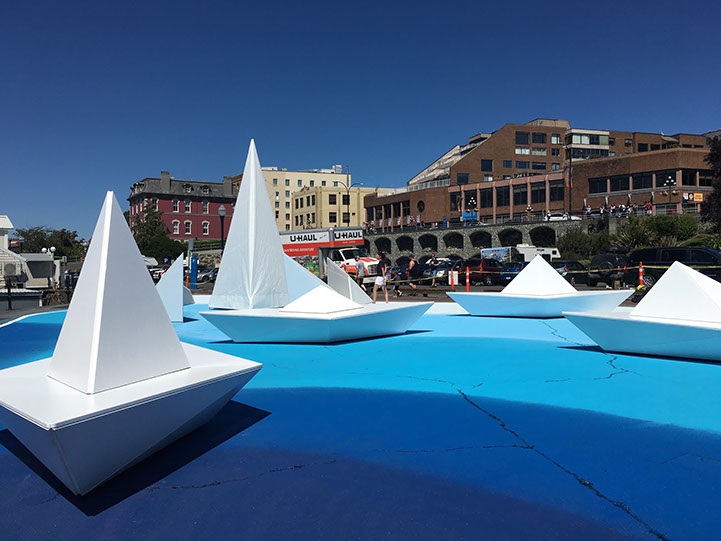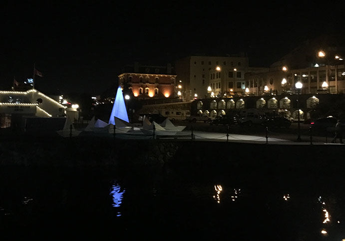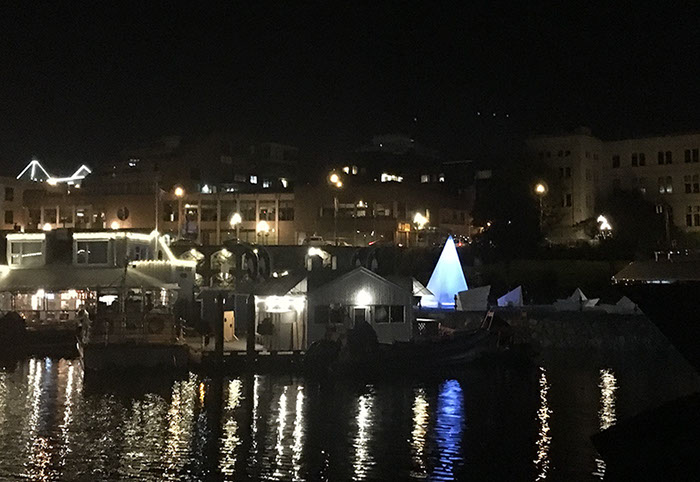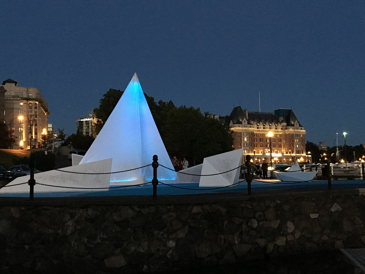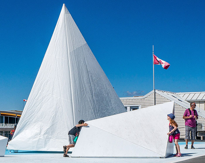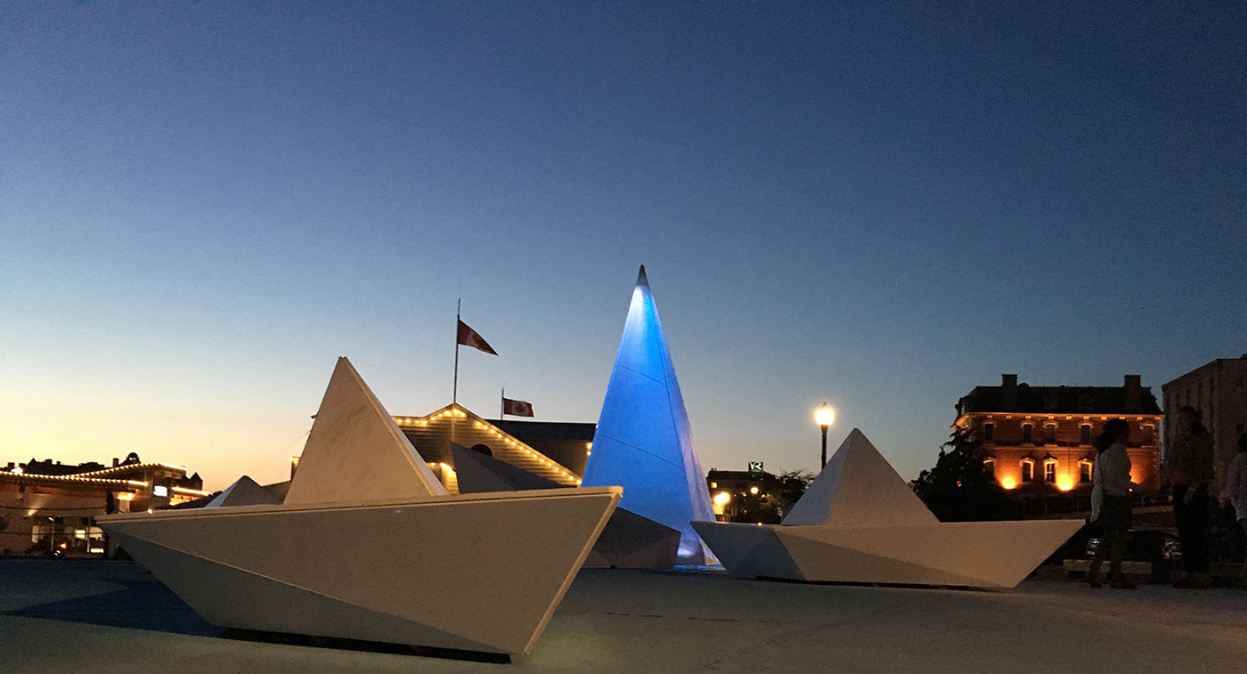 Lighting subtly changes over the course of the night. Individually controlled LEDs project an image onto the sail fabric of the beacon, making it visible from street level and from across the harbour.